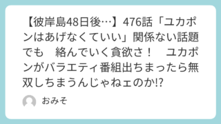 彼岸島 【彼岸島48日後…】476話「ユカポンはあげなくていい」関係ない話題でも 絡んでいく貪欲さ! ユカポンがバラエティ番組出ちまったら無双しちまうんじゃねェのか!?