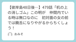 彼岸島 【彼岸島48日後…】479話「机の上の消しゴム」この明が 仲間内でいる時は無口なのに 初対面の女の前では饒舌になりやがるからちくしょう!