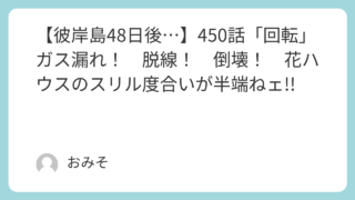 彼岸島 【彼岸島48日後…】450話「回転」ガス漏れ! 脱線! 倒壊! 花ハウスのスリル度合いが半端ねェ!! 週刊ヤングマガジン2025年32号掲載。作者は松本光司先生。相変わらずネタバレの時には容赦ねェな敵にはしたくねェ 2025.07.07 彼岸島