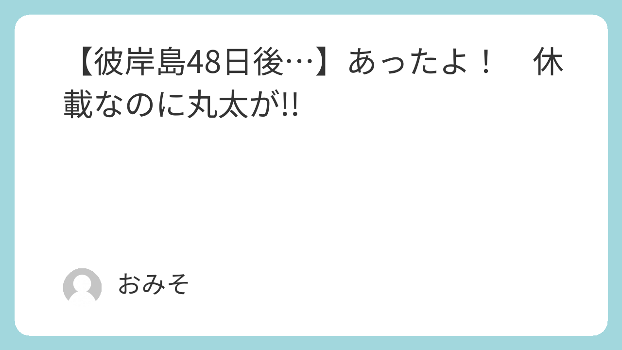その次号の20号には『彼岸島48日後…』が載ってねェじゃねェか! 目次の最後の「※『◯◯』は休載いたします。」の欄に…あったよ!『彼岸島48日後…』の文字が!! でかし…そんな…そんっ 結局載ってねェのかよ!ちくしょう! 19号の最後のコマに「次号につづく」の文字はあったが、巻末の次号予告には『彼岸島48日後…』の文字は無かったから「どっちなんだァ? 「掲載内容は予告なく変更になる場合があります。」と書いてあるから実は掲載されるのかァ?」と思っていたら20号に無くて…ンだよこのクソ予告!と思いながらヤンマガを読んでいると…あったよ! 丸太が!