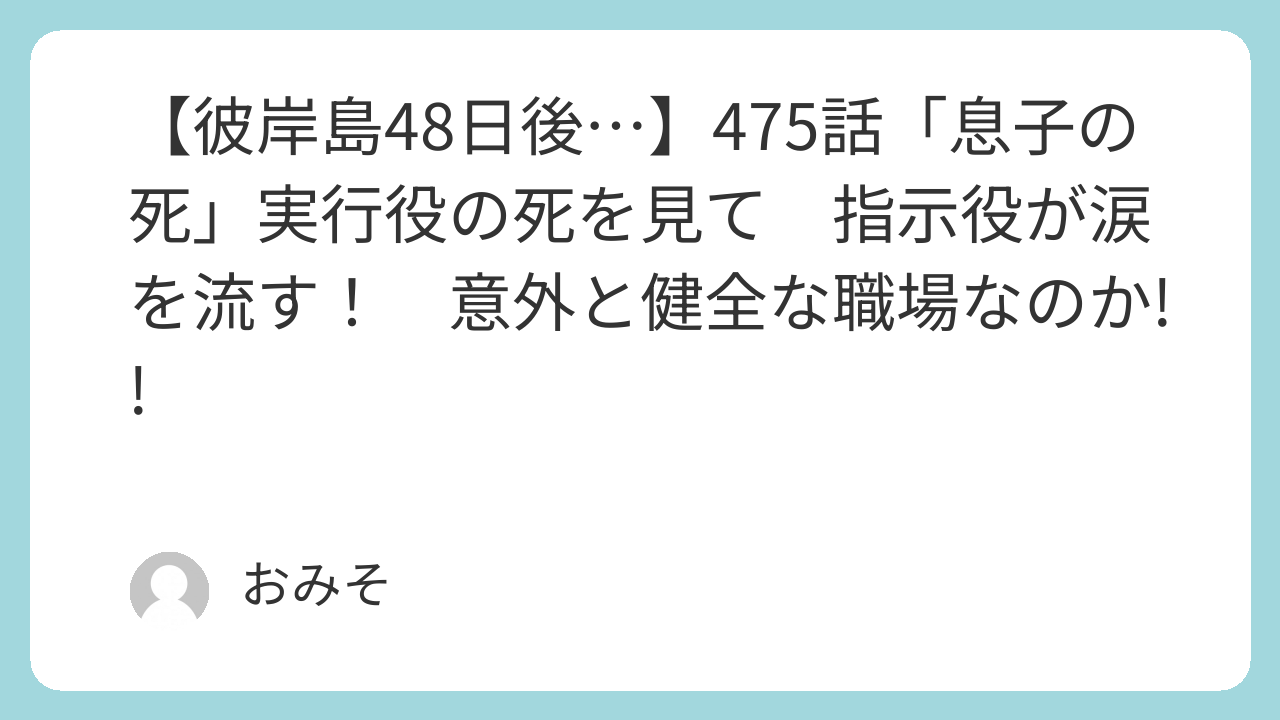 明は仁達の鮫島へのパパ呼びを無視する優しさを見せたかと思ったら…「君たちのパパは最強だよ」ってイジりやがった! ハ 明がこんな会話をするのは何年ぶりだろう。今まで一人で頑張ってきたが、仲間が出来てさらには兄貴が味方になったことで明るくなってきたんだろうなァ。超嬉しいぞ!