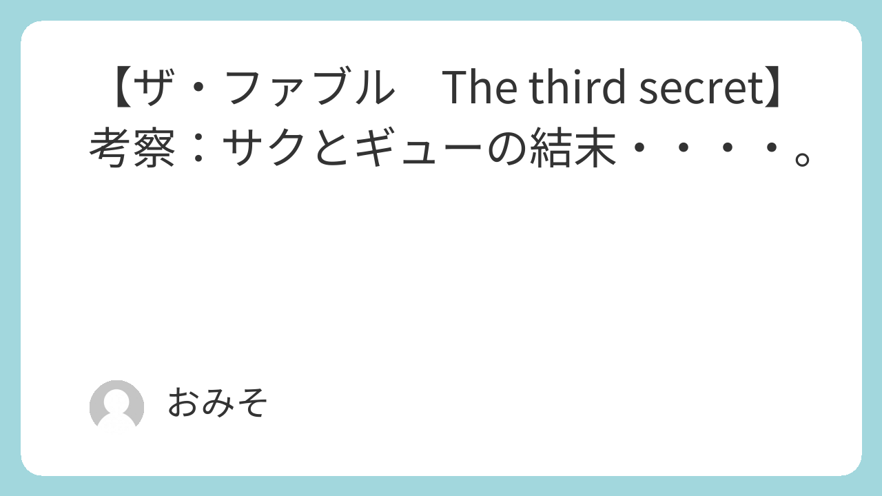 【ザ・ファブル The third secret】考察:サクとギューの結末・・・・。