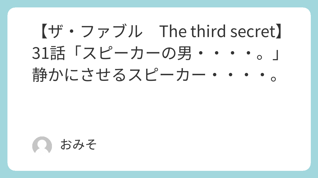 人から恨まれるようなことをしていると◯◯がやってくるぞ~。今まではファブルだったが、今回はクロと海老原、キックが井土にとってそういう存在になった―――。以前のクロは名を残したいと思っていた男だったが―――ミサキに存在を知られることもなく動画を消すことに成功―――。この事は誰にも言いふらさない―――。佐藤の弟子として―――上々の結果だったんじゃないだろうか―――。